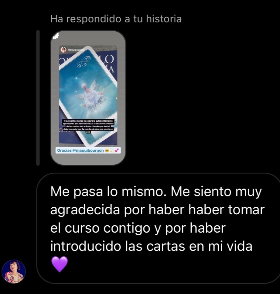 Entré al curso para conocer las cartas de oráculo y aprender a recibir mensajes de mis guías espirituales. No sabía nada sobre el tema.
