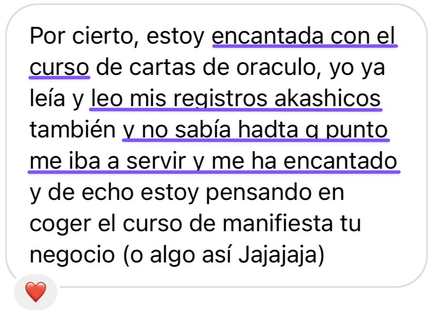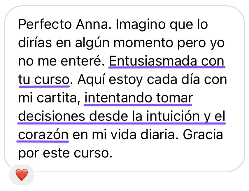 Hoy quiero poner todo lo que aprendí al alcance de los demás mediante este curso para que cada vez más personas como tú sea atrevan a conectar con su intuición y decidan vivir la vida que REALMENTE quieren vivir sin miedo, con la validación de las cartas.