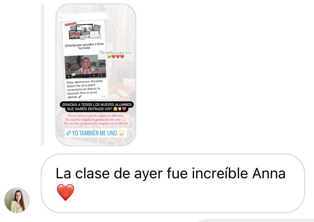 «El curso me está ayudando mucho a tomarme las cosas de otra manera, a fluir y a sentirme mucho más confiada en mi negocio»